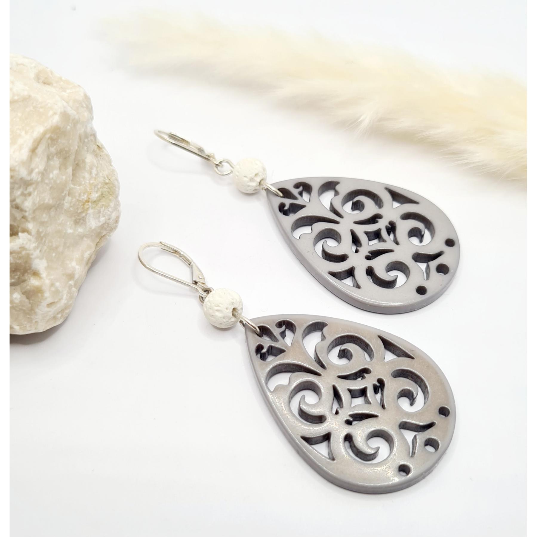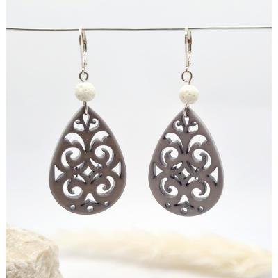 Aromaohrringe Ornament Arcryl Grau